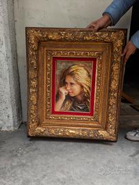 vendesi bellissimo quadro antico, ritratto di una fanciulla. cornice dorata.