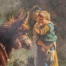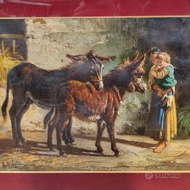 QUADRO ANTONIO MILONE NELLA STALLA OLIO SU TELA