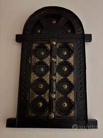 Quadro arabo a forma di porta tipica araba, originale in legno scuro con rifiniture in metallo misura in altezza cm 49 e in larghezza cm 26