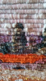 Età 40 anni intrecciato a mano . Materiale cotone tinto colori vegetali . Realizzato per Festival Latino Americano. Misure cm . 200 x 85. Se spedito andrà tolta cornice .