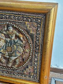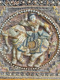 Soggetto: Raffigura scene tradizionali, spesso con divinità o elefanti, circondate da bordi decorativi.