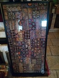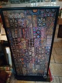 Quadro, arazzo etnico, originale, opera proveniente dall'India. Arazzo fatto a mano ,con cornice da appendere ricamo decorativo, lavoro indiano arte vintage, arte boho. con vetro, per info chiamare. trattabile