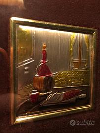 Simpatico Quadretto su lastra in ARGENTO 925 incorniciata in cornice legno e vetro.