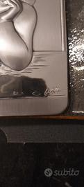 opera in basso rilievo, in argento 925 ,dell'artista Castellani, su base in vetro di Murano