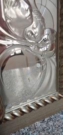 Quadro in argento raffigurante Madonna con bambino. Misure circa 28 × 43. Piccolo difetto come da foto.