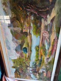 quadro ad olio dipinto su tela, telaio di legno. riguarda scena di caccia vagante con cane. comprensivo di cornice. misura: cm 140 x cm 90.