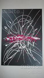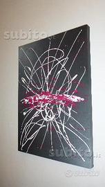 Quadro - arte moderna materico Pollock Stye 50x70X4 Acrilico su Tela - Nero Bianco avorio Rosso Carminio