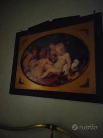 quadro arte povera dorato con riproduzione di angeli a pittura no stampa