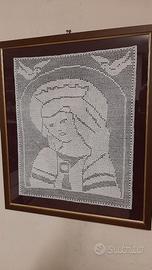 Quadro filet creazione ad uncinetto VIso di Madonna Artigianale, ricamato a mano Dimensioni cornice 58 x 67 Dimensioni quadro filet 45 x 54 Protetto da vetro