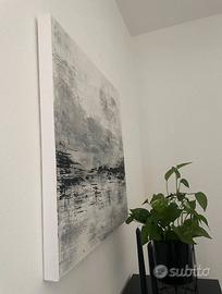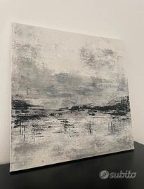 Un’opera originale e moderna realizzata a mano con colori acrilici, che gioca con le sfumature del grigio, del bianco e del nero per evocare paesaggi astratti e suggestioni minimaliste.