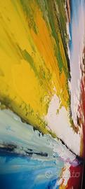 Vendo grande quadro astratto materico realizzato con tecnica a spatola. Dimensioni importanti: 213 × 114 cm (cornice inclusa). Pezzo molto scenografico, ideale per salotto, ufficio o ambienti moderni. Dettagli: • Tecnica: pittura materica a spatola • Colori: rosso, giallo, blu, verde, bianco • Cornice elegante color oro • Formato extra large • Ottimo impatto visivo • Retro della tela usurato in alcuni punti, ma fronte in buone condizioni Possibile consegna a mano (considerate le dimensioni). Per altre foto o video dal vivo scrivetemi pure.