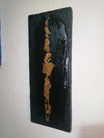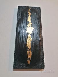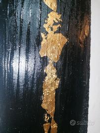 quadro materico astratto realizzato a mano, caratterizzato da un profondo contrasto tra il nero testurizzato e una luminosa venatura in foglia oro centrale. La superficie in rilievo reagisce alla luce, creando riflessi sempre diversi e un forte impatto visivo nonostante le dimensioni compatte. Dimensioni: 29 x 11,5 cm (perfetto per nicchie, colonne o pareti galleria). Stile Moderno, Minimalista, Materico. Supporto: Leggerissimo polistirolo lavorato (facile da appendere anche senza chiodi pesanti). Vendo causa trasloco imminente No spedizione Scrivimi pure per info o per accordi sul ritiro. Grazie 🤗