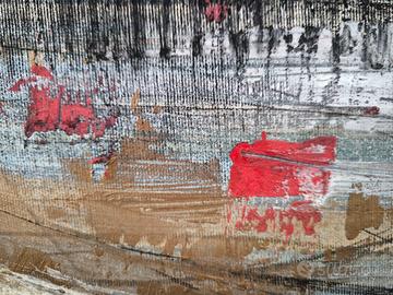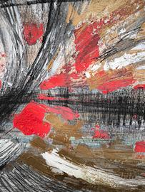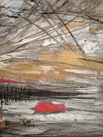 quadro astratto dipinto a mano originale unico con colori acrilici rosso oro argento nero stucco bianco, 100x70 (altre foto su richiesta) possibilità di certificato di garanzia