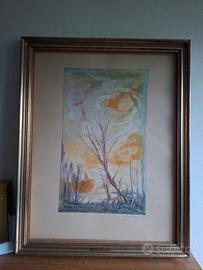 Si tratta di un dipinto, del artista Michele di nunzio che raffigura un paesaggio invernale con alberi spogli, incorniciato in una cornice è un albero spoglio inclinato al centro, con altri arbusti sullo sfondo.