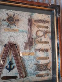 quadro a bacheca 37x33 cm con tipi di nodi navali e ormeggi. con descrizione in inglese. vintage restaurato. ideale per arredamento.
