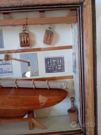 Quadro bacheca vintage con soggetto scafo barca a vela in ambiente di rimessaggio. Ottimo stato. Cm 49x31. Prof cm 7. Possibile ritiro a Roma Sud. € 35