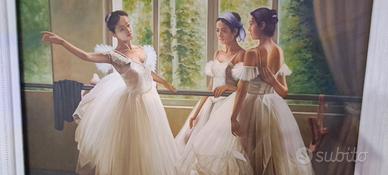 Vendo splendido dipinto raffigurante tre ballerine classiche in un momento di pausa alla sbarra, firmato A. D'Eramo. L’opera è realizzata con tecnica a olio su tela, in stile realistico, con colori caldi e armoniosi.