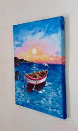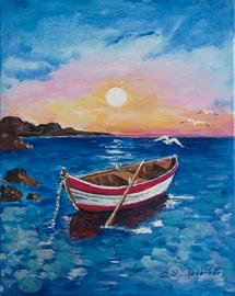 quadro barca in mare 24 x 30