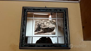 Quadro barca in argento 925 con specchio, autore Cristian