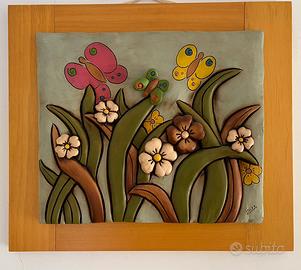 Quadro Basso rilievo in cotto “giostra della metamorfosi” decorato a mano su base il legno naturale. (48x42). No perditempo. Solo contatto telefonico.