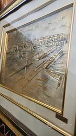 Quadro bassorilievo argento 925 panorama Gallipoli 75x65 numerato 64/65 con certificato.