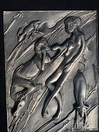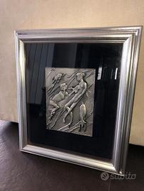 Bassorilievo Remo Brindisi intitolato Pastorale Giovani Innamorati cm 24,5*18 firmato e punzonato 925% Compreso di cornice argentata legno.