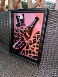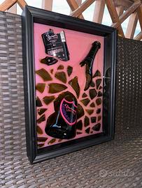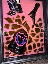 Vendo quadro artigianale unico realizzato con tecnica bottle art: una composizione esclusiva con frammenti di vetro autentici e bottiglia Dom Pérignon Lady Gaga Luminous Edition, incastonati in resina epossidica lucida.