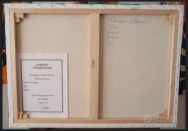 Quadro di un’artista contemporanea francese di nome Patricia Kleyman, dipinto nell’anno 2016, titolo “Cabaret Parisien”, raffigurante il primo piano di una donna elegante che evoca inequivocabilmente la “belle epoque francais” del secolo scorso. Acrilico su tela, dimensioni 73x60x2 cm, già montato su telaio in legno, firmato a mano dall’artista sul retro e fornito del suo certificato di autenticità. Opera unica acquistata su noto portale di aste online. Le notizie sull’artista e la sua produzione artistica sono facilmente reperibili sul web. Lei abita nel sud della Francia e vende esclusivamente le sue opere on line. Ha un suo tratto distintivo molto ben definito, difatti sulla rete è possibile rintracciare altri suoi quadri con elementi raffigurativi simili a questo, sia per i soggetti, per i colori utilizzati, che per la tecnica realizzativa. Vendo ad Euro 150 più spese di spedizione.