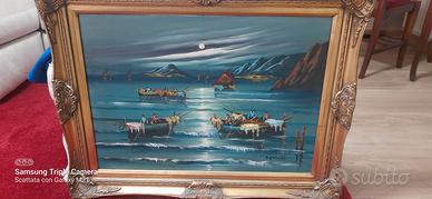 Nuovissimo quadro in tela con cornice in legno e gesso.