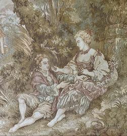 Bellissimo quadro da antiquariato di grandi dimensioni con rappresentazione di scena pastorale con figure e animali. Perfetto per aggiungere un tocco di classe alla tua casa!