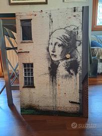 Riproduzione opera Banksy "Girl with a pearl earring". Dimensioni 60x90