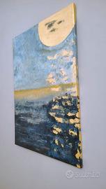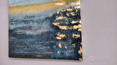 Canvas "Gold Moonlight" dipinto a mano con aggiunta di Foglia Oro. Misure: 77,5 cm x 53 cm x 2 cm. NON TRATTABILE
