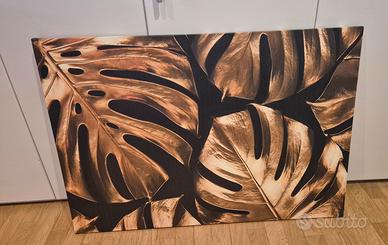 Quadro 68 cm x 99 cm, in tela su telaio legno. Bellissima stampa, sfondo nero e foglie oro a contrasto.
