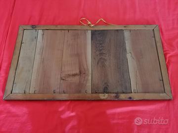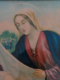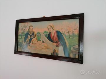 Vendo per cambio arredamento quadro capoletto vintage (anni '30) perfettamente conservato con immagine sacra raffigurante Gesù bambino con Giuseppe e Maria, cornice in legno laccato. Con vetro anteriore e rappresentazione su carta.