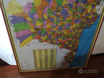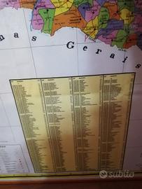 Originale Cartina Politica di Stato Bahia Brasile 90×120 In perfetto stato, inquadrata con cornice, Proveniente da stabile comunale nel comune di Porto Seguro Bahia Brasil