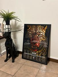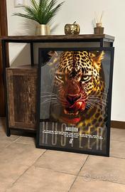 Quadro decorativo con stampa di un giaguaro e citazione motivazionale.