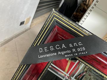 Quadro Cavalli D.e.s.c.a. Snc, argento 925, made in Italy. Solo ritiro a mano: zona Pomezia o Fiano Romano. Creazioni artistiche. Quadro Cornice in legno, fondo a specchio e rilievo raffigurante più cavalli, due cavalli in primo piano. Dimensioni: cm 72 x 60.
