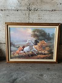 Quadro Cavalli con cornice dorata 84 x64 Spessore 4 Interno 50x70 Ritiro zona Est Milano