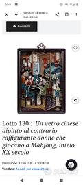 pittura cinese su vetro al rovescio (o reverse glass painting), varia notevolmente in base all'epoca di realizzazione, alle dimensioni e allo stato di conservazione. Il soggetto raffigurato, donne che giocano a Mahjong, è un tema classico del XX secolo.