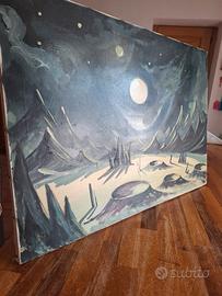 quadro su tela , cratere lunare 50x70 con 2 buchetti vedi foto da restaurare..