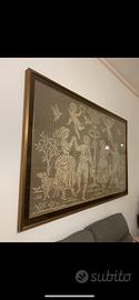 Questo oggetto è un quadro realizzato a mano con la tecnica dell'uncinetto a filet, spesso utilizzato come elemento decorativo d'arredo.
