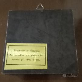 Vendo raro quadro da collezione contenente due monete in oro 8 kt, certificate come le più piccole del mondo.