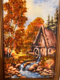 Quadro con ambra naturale dalla Lettonia