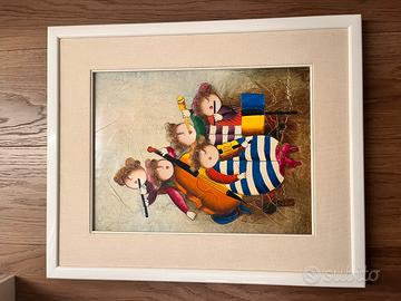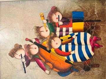 Carpegiani, Misure: 30x110 cm, titolo dell'opera i musicisti. É un dipinto nello stile artistico naif e folk, ispirato all'artista Joyce Roybal