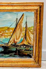 Quadro con Barca dipinto a mano datato.