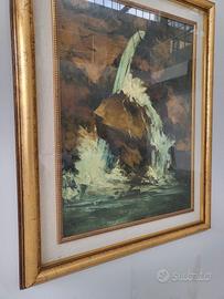 Quadro rappresentante una cascata con paesaggio pittura ad olio su tela firmato, originale. Si presenta in buone condizioni.