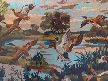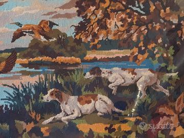 Quadro in tessuto raffigurante scena di caccia. Dimensioni: 75cm x 135cm