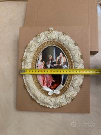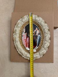 Elegante quadro con cornice ovale in stile barocco con decorazioni dorate e in rilievo.