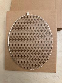 Elegante quadro cornice ovale decorata in stile classico, con dettagli dorati e bianchi in rilievo e piccolo fiocco con strass.