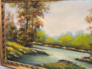dipinto a olio su tela paesaggio fluviale